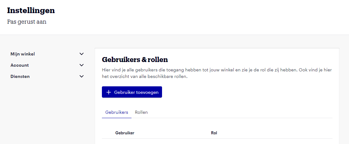 You can easily add a new user by going to the "Gebruikers en Rollen" in your bol.com seller account or access it with this link.