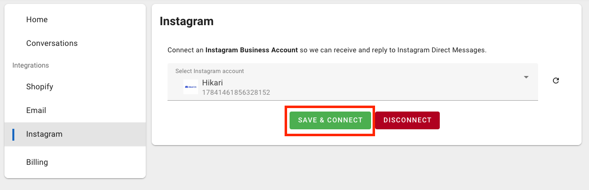 6: You'll be redirected back to the Hikari CS customer portal. Once there, click Save & Connect. And you're done!