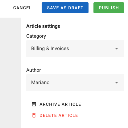 - Finally, click either “Publish” or “Save as Draft” to save your help article.